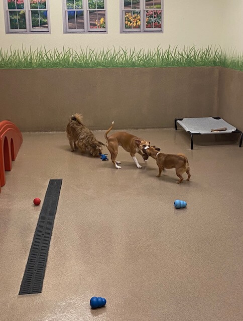 Attending daycare on a regular basis can help with health, socialization, and overall happiness! Our experienced staff monitors closely to make sure everyone plays nicely and that there are no problems. We separate the classes based on personality, size, and energy level too. Please note, we ask that anything you bring for your pet is labeled.